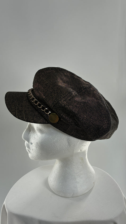 Vintage BADGLEY MISCHKA Metallic Bronze Newsboy Cap with Chain Detail