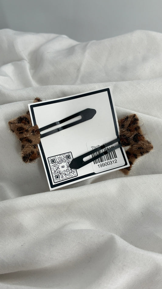 Fuzzy Cheetah Printed Shooting Star Hair Clips
