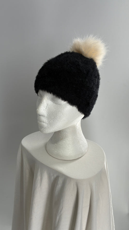 Anthropologie Sleeping on Snow Black Pom Pom Beanie