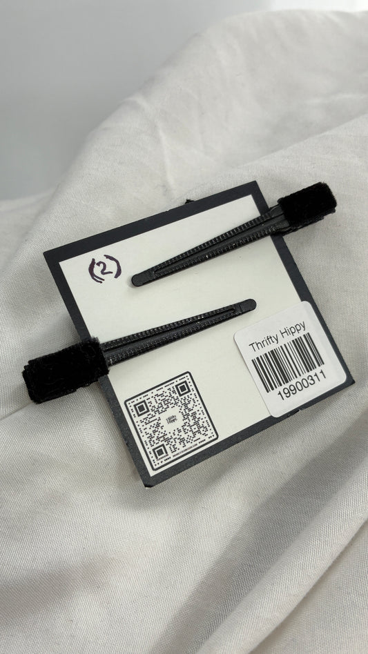 Black Velour Bow Rhinestone Hair Clips