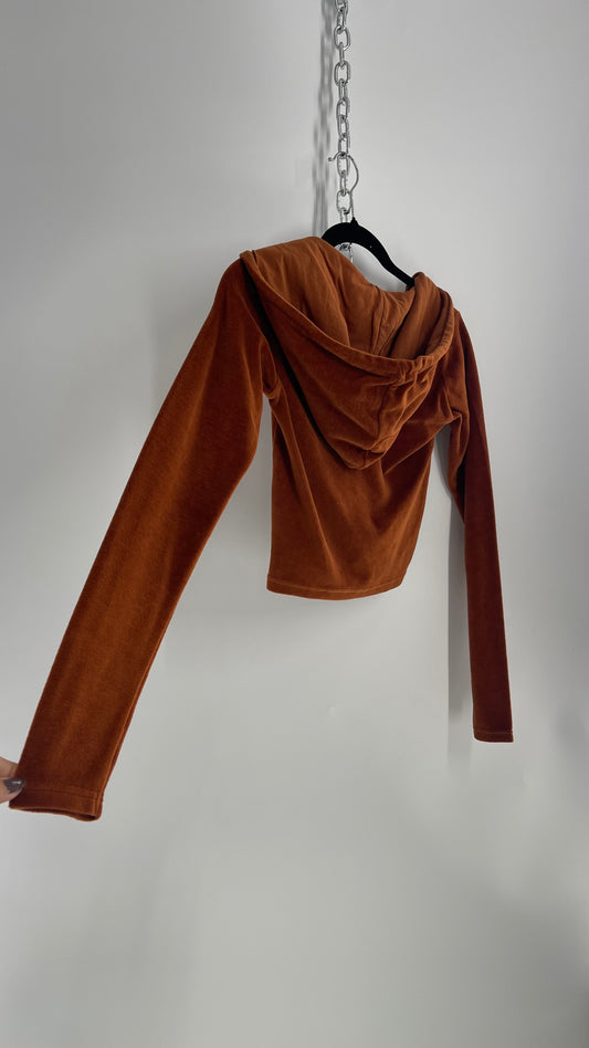 Lets Frans Burnt Orange Embroidered Cropped Hoodie (XS)