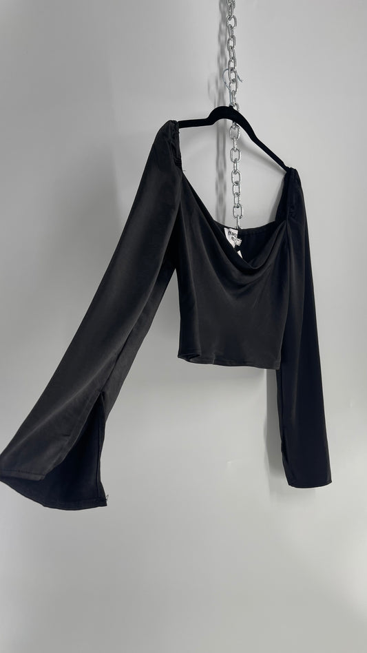 Princess Polly Black Satin Drape Front Long Sleeve (8)