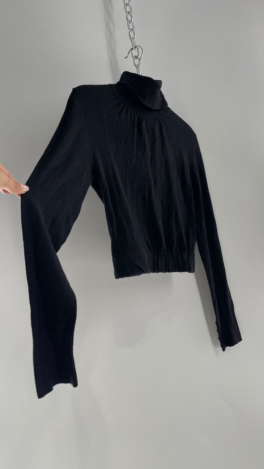 Anthropologie Black Cropped Turtleneck with Wrist Buttons (Small)