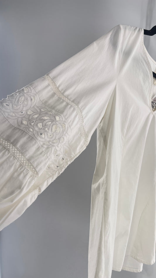 Maeve Anthropologie White 100% Cotton Blouse with Balloon Sleeves, Eyelet Lace, and Armpit Zipper (12)