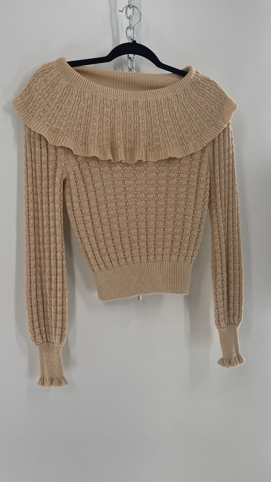Free People Baby Yellow Knit Ruffled Off the Shoulder Sweater (Small)
