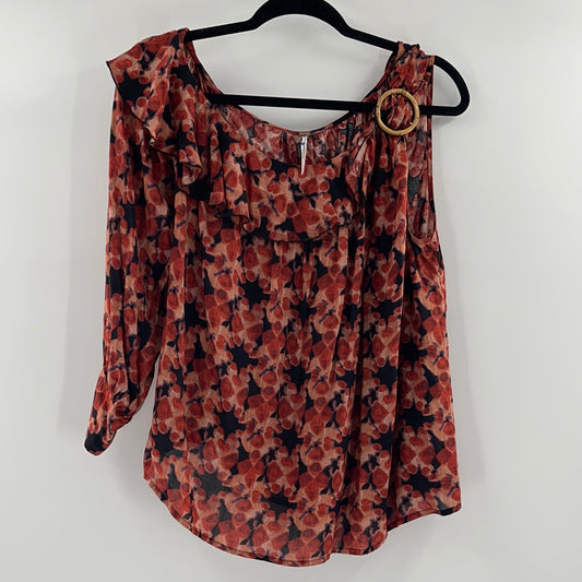 Free People Red, Neon Orange Leopard Paisley Patterned Button Front(Medium)