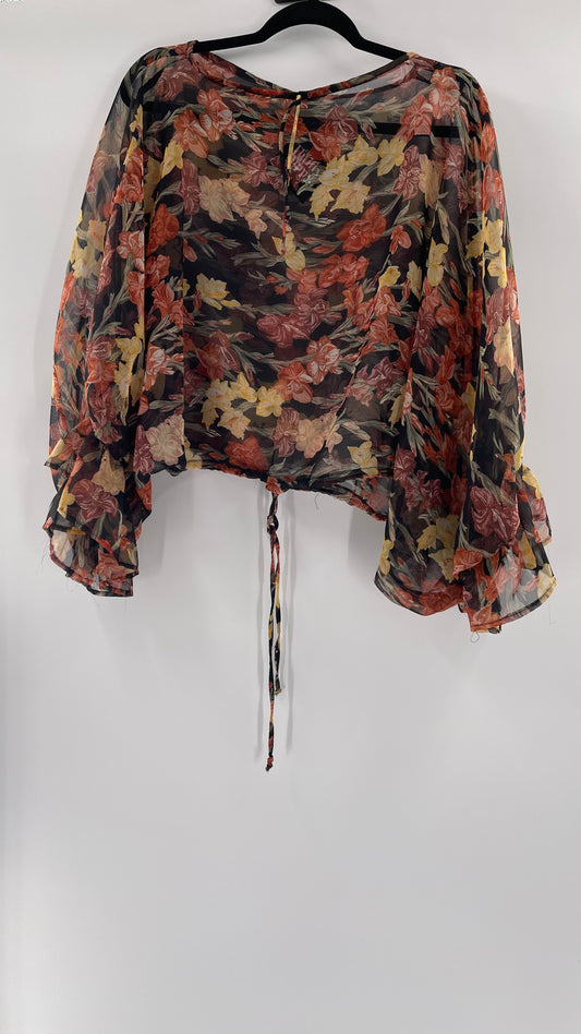 Unmarked Sheer Floral Cropped Long Sleeve (Medium)