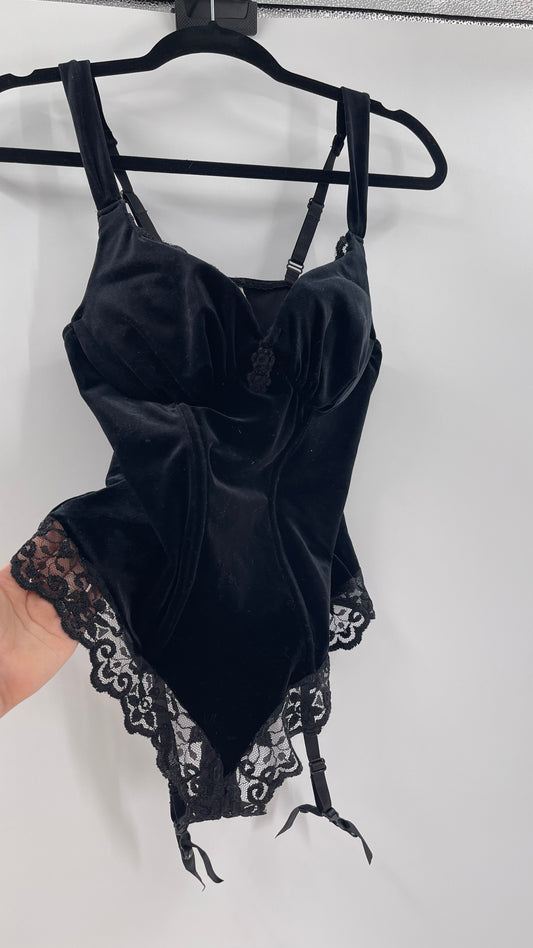 Deadstock Vintage Victoria’s Secret Black Velvet Corseted Body (Large)