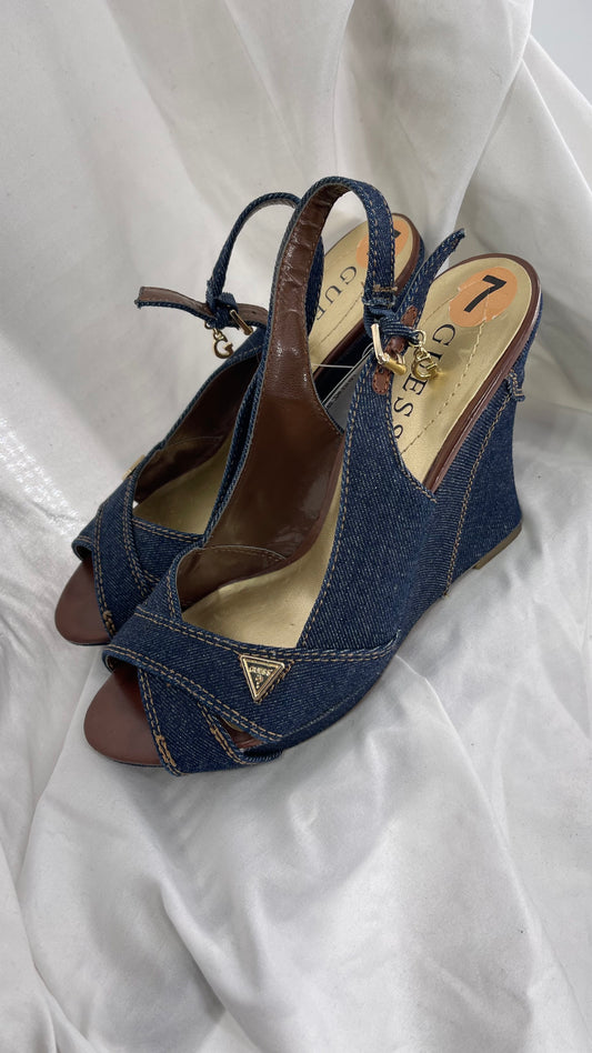 Vintage GUESS Dark Denim Jeans Wedges with Slingback Strap and Iconic Logo (7)