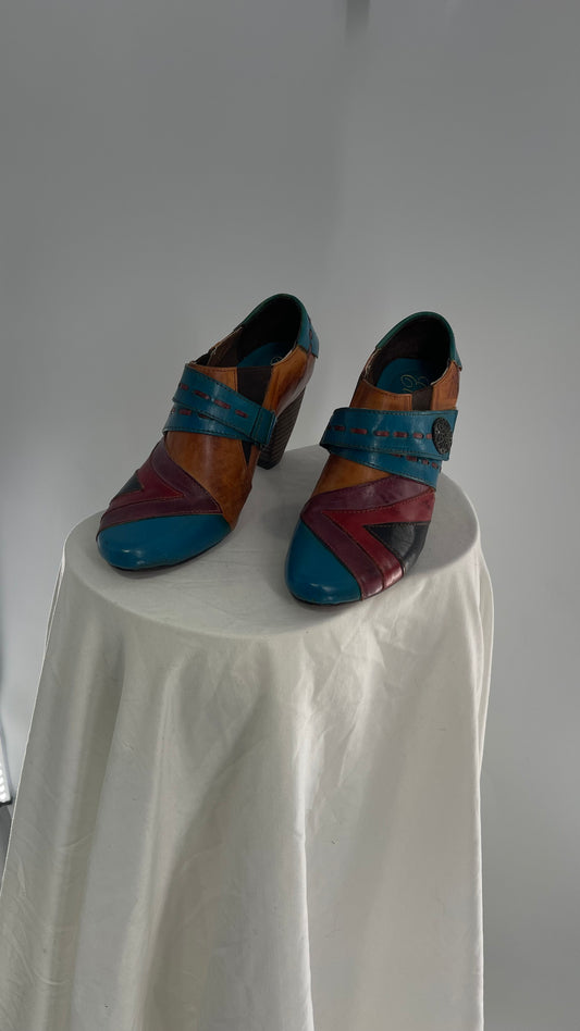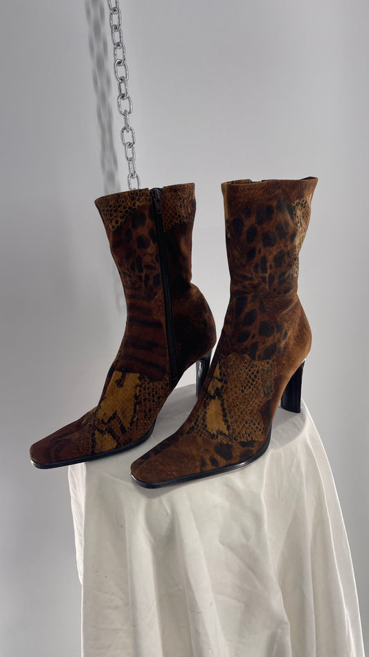 Vintage MOULIN Square Toe Mixed Animal Print Patchwork Booties (8.5)