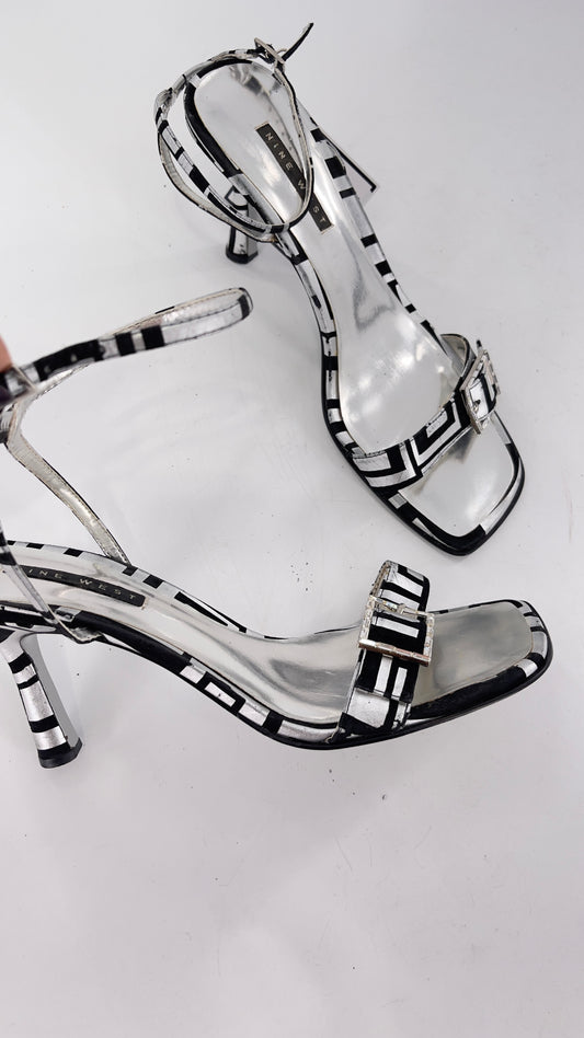 Vintage 1990s Nine West Square Toe Rhinestone Buckle Heel(10)