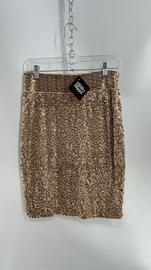 EXPRESS Sequin Bronze Skirt with Thick Band (XS)