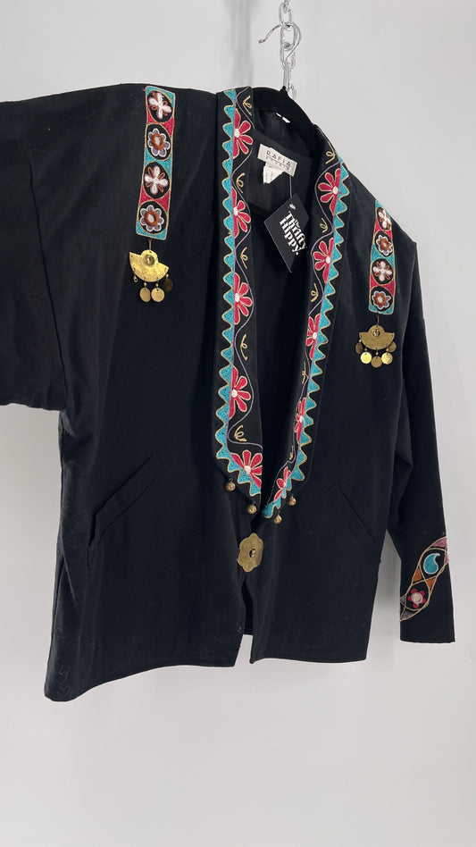 Vintage 1970s RÁFIA STUDIO Western Embroidered Jacket with Bronze Medallions (Medium)