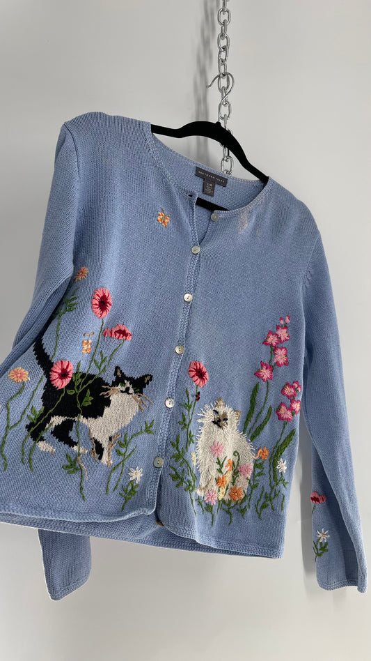 Vintage Northern Isles Powder Blue Kitten in Flower Field Cardigan (Large)
