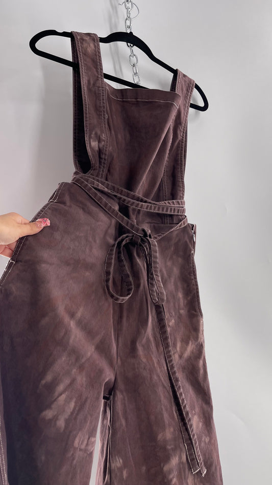 Brown Hand Dyed Jumpsuit with Waist Tie Detail and Open Back (Small)