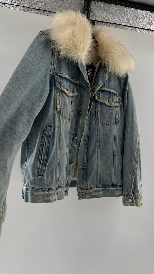 Heartloom Heavy Duty Denim Jacket with Faux Fur Collar and Removable Shearling Lining (Large)