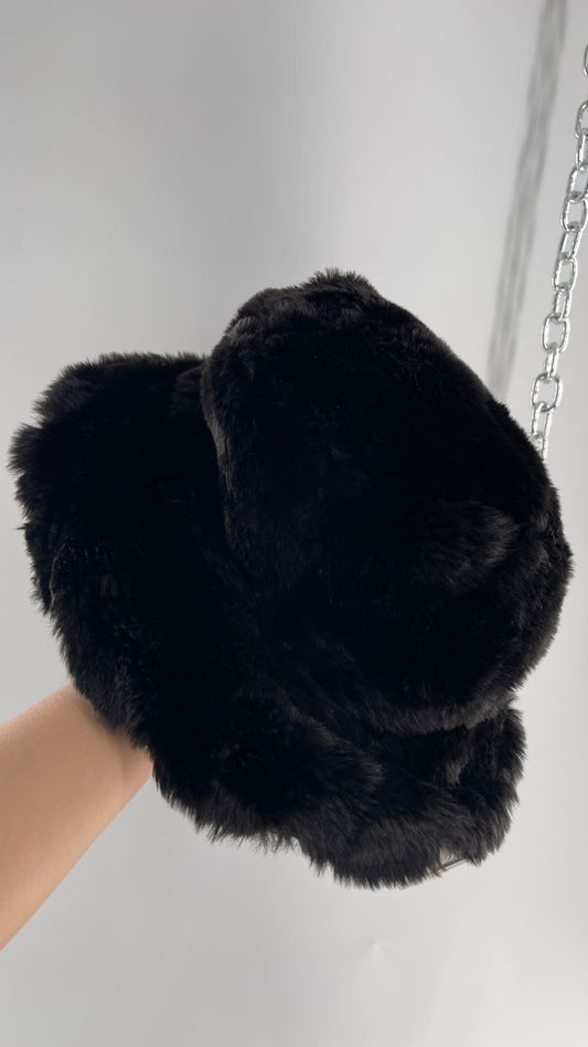 Vintage Black Fluffy Furry Reversible Bucket Hat
