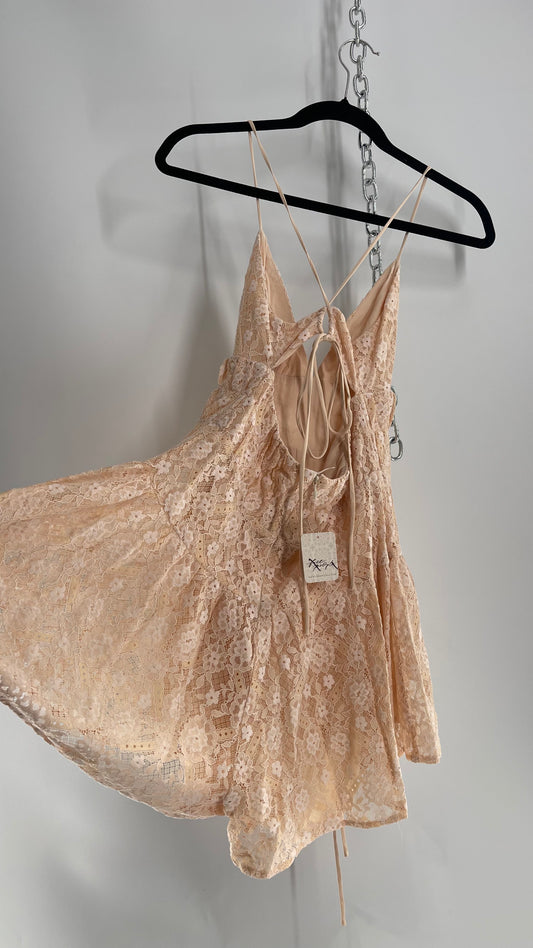 Free People Lexi Strappy Lace Baby Pink Romper with Tags (S)