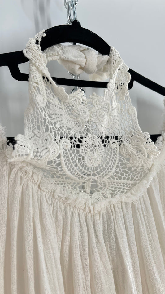 Free People Flowy Gauze/Cotton Free Flow Dress with Lace Halter (Small)