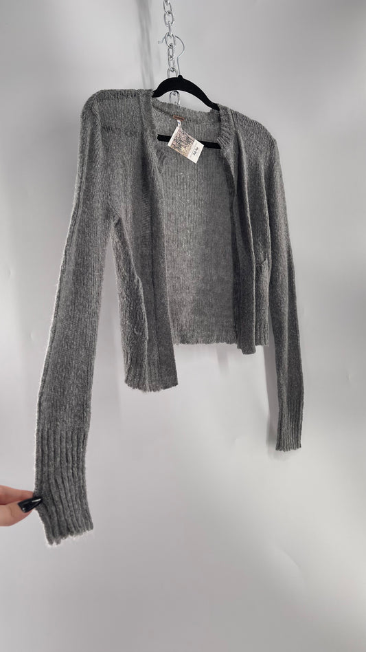 Free People Gray Pocketed Cropped Cardigan (XS) 29% Mohair 21% Wool