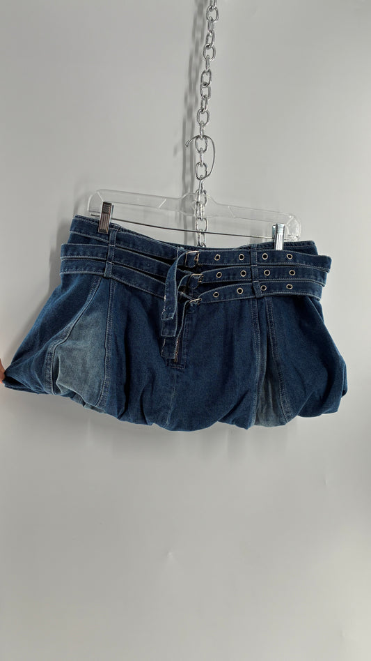 Bubble Hem Denim Micro Mini Skirt (Medium)