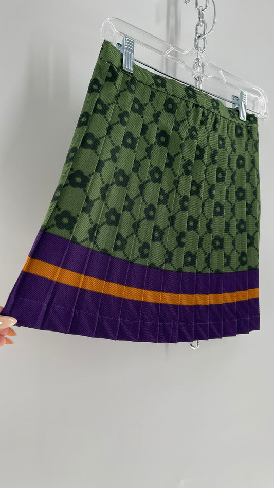 Urban Outfitters School Girl Green Pleated Floral Mini Skirt (Small)
