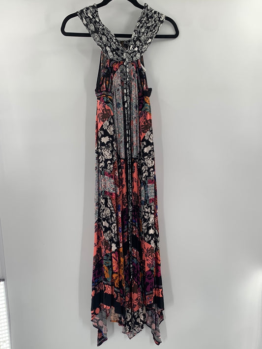 Free People Navy Blue Cotton Lace and Embroidered Open Tie Side Dress (M)