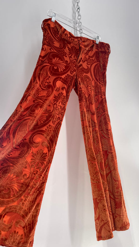 Urban Outfitters Burnt Orange Flares with Velvet Paisley Pattern (12)