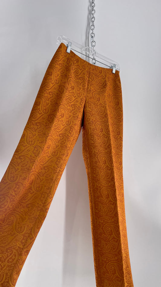 Peserico Italian Vintage Gold/Mustard Orange Paisley Patterned 56% Acetate Trouser (40)