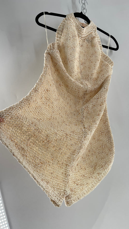 Free People Beige Peaches and Cream Crochet Knit Romper (XL)