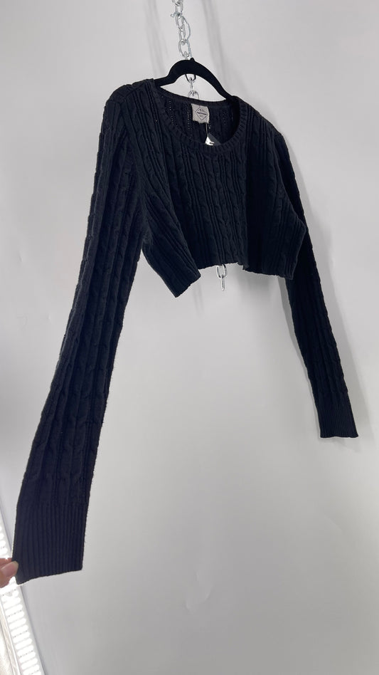 Urban Outfitters Reworked Cropped Cableknit Black Sweater (Medium)