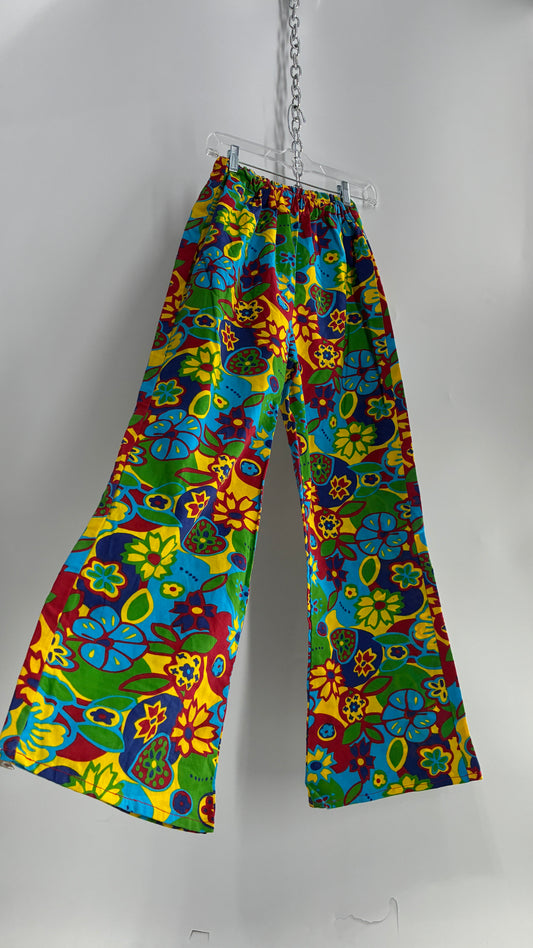 Vintage 1970s Style Flower Power Kick Flare Hippy Wide Legs (S/M)