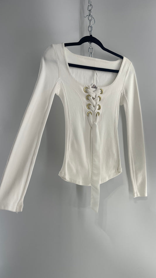 Free People White Lace Up Long Sleeve with Gold Grommets (XS)