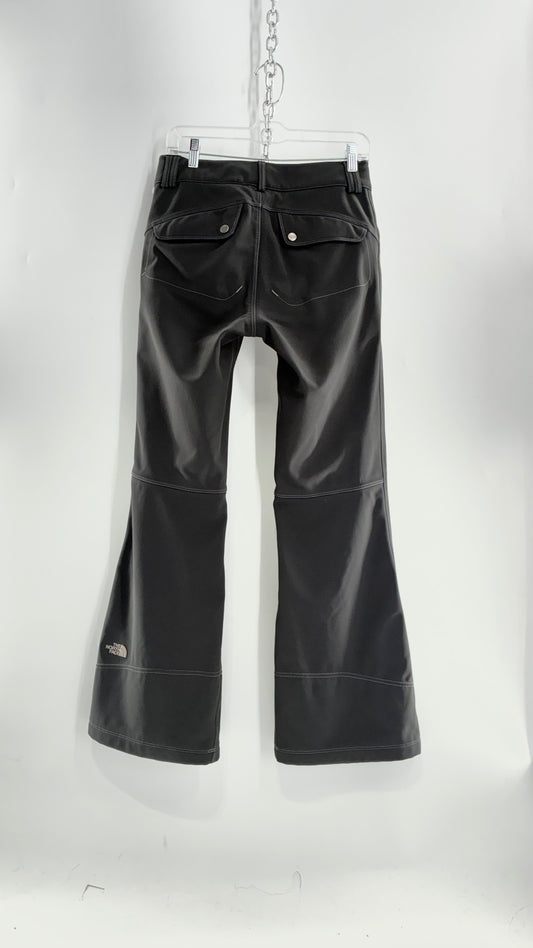 Vintage North Face Dark Gray, Low Rise, Kick Flare Pants with Contrast Stitching, Side Closure and Oversized Bum Pockets (Small)