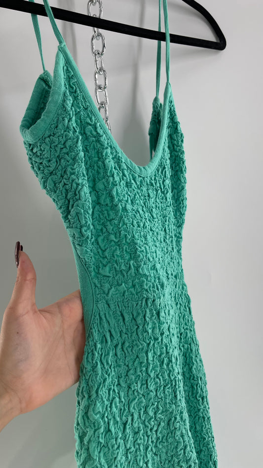 Free People Kelly Green Popcorn Maxi Dress with Low, Open Back Detail (XS)