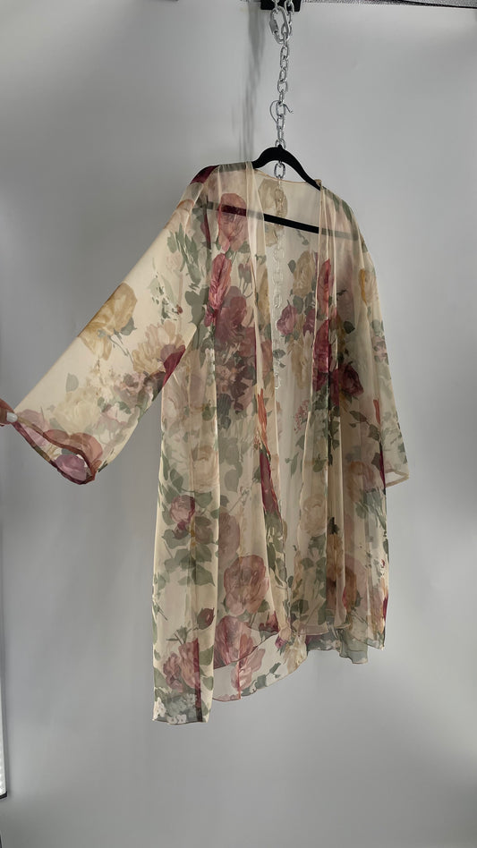 1990s Vintage Off White Muted Florals Dress + Cape Set (16)
