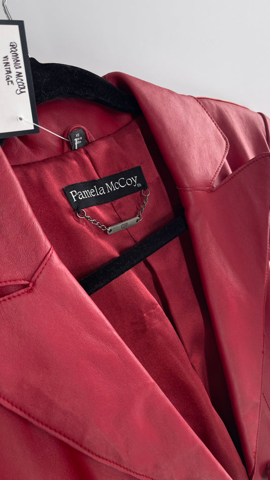 Vintage 1990s Pamela McCoy Red Leather Blazer Jacket (XS)