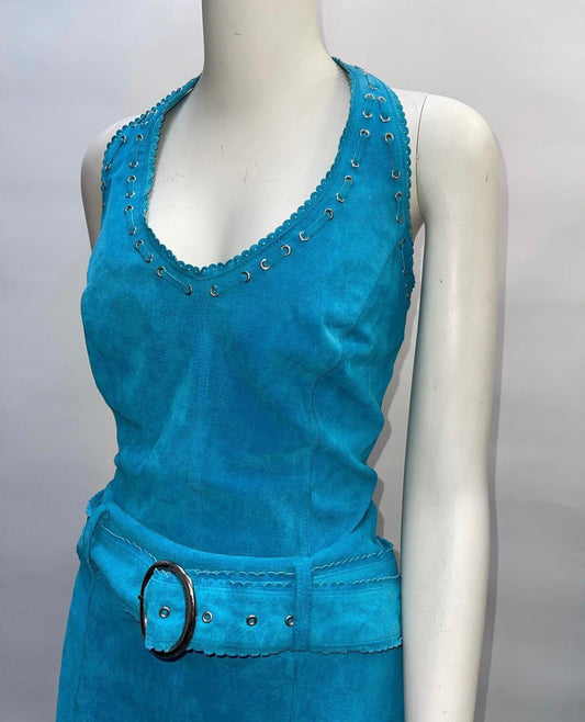 Vintage Teal Suede Leather Mini Dress(Sz 8)