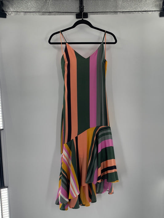 Lost Wander - Anthropologie Satin Sleeveless Spaghetti Straps Stripped Asymmetrical Hem Maxi Dress (Size XS) - With Tag -