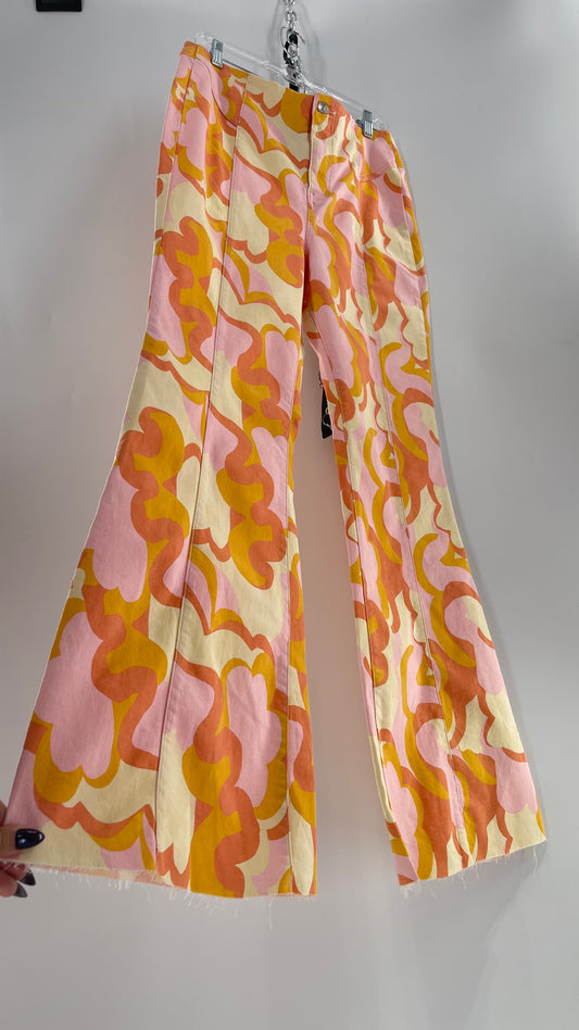 Free People Youthquake Warm Toned Funky Patterned Flare Bell Bottoms (31)