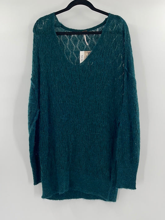 Free People Sheer Green Oversized Sweater (Size Medium)