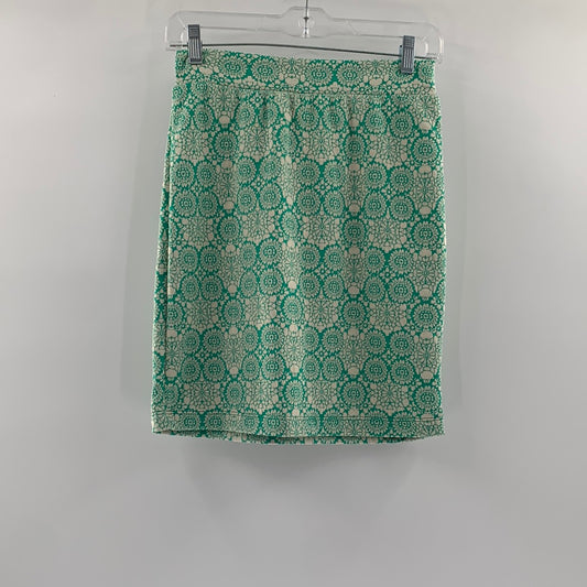 Renee C - Anthropologie - Green Floral Stitched Mini Skirt (Size Small)