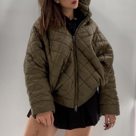 Without Walls Army Green Abstract Quilted Puffer (XS/S)