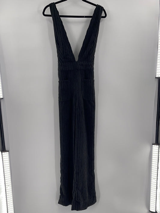 BDG Urban Outfitters Black Corduroy Backless Crossed Back Straps Jumpsuit (Size 10)