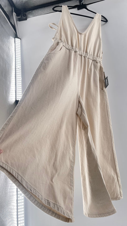 Free People Alora Wide Leg Denim Jumpsuit (XL)