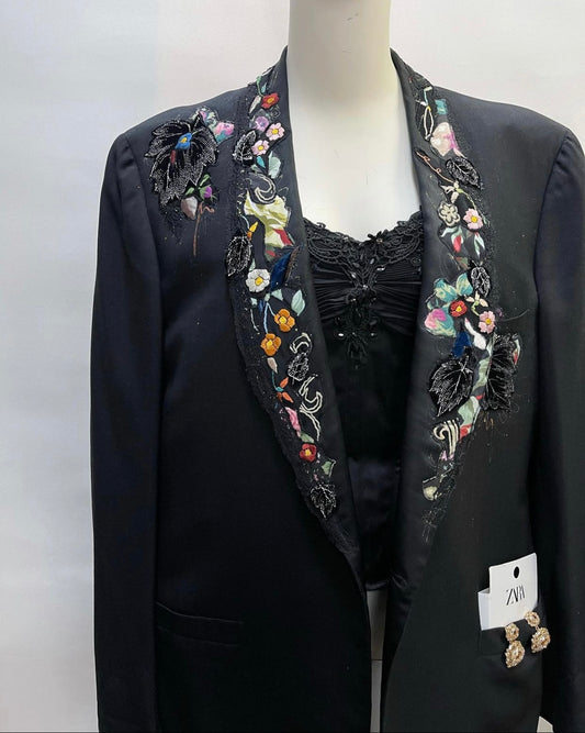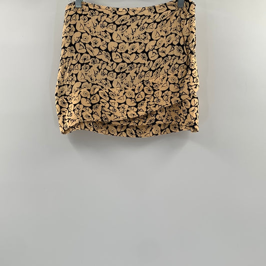 Free People Black Linen with Beige Floral Print Mini Skirt (Size 6)