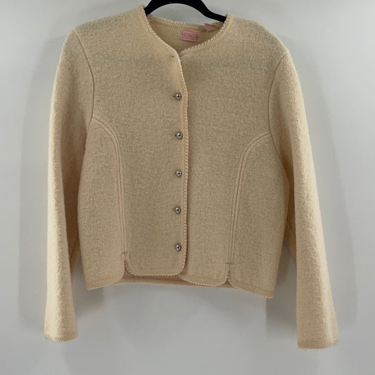 Ashley 100% Wool Cream Cardigan With Silver Buttons (Size 11/12)