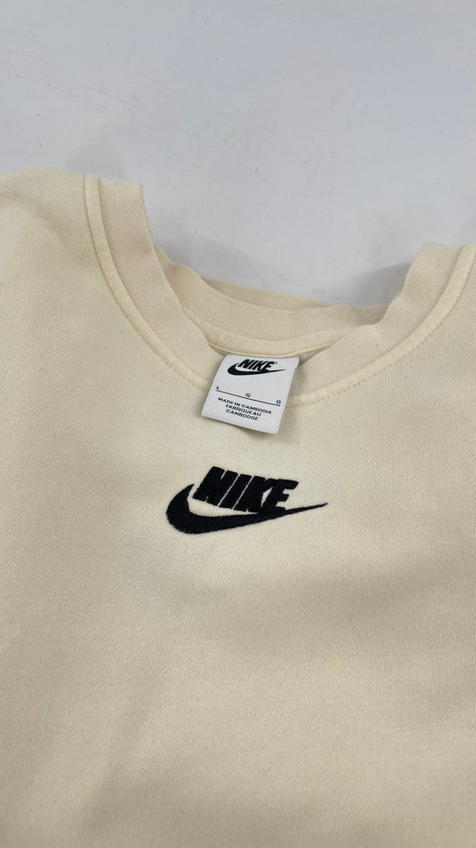 Cream Nike Crewneck with Minimalist Black Chest Logo (Large)