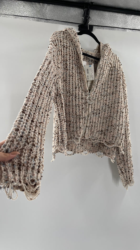 Miracle Distressed Chenille Zip Front Hoodie (S/M)