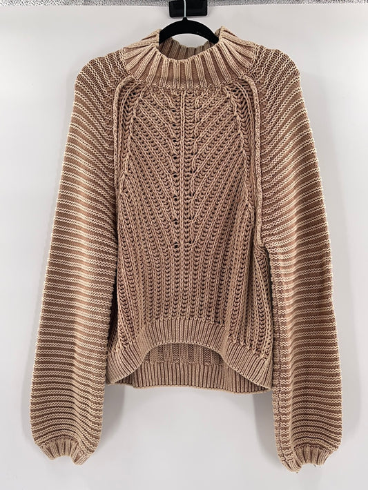 Free People Sweetheart Sweater Chunky Rib Knit Mock Neck Pullover Tan (Size Large)